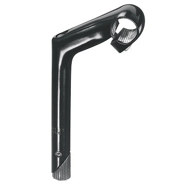 Cette potence plongeur de couleur noire se fixe dans une douille de direction qui fait 25.4mm de diamètre. Elle convient à un cintre de 25.4 mm et peut également aller à un cintre de 22.2 mm grâce à des adaptateurs pour guidon proposés en option. Spécialement conçue pour des vélos de ville, elle est faite pour la rénovation de vélo.